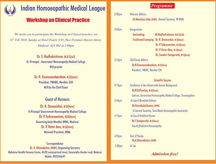 IHML CHENNAI - INVITATION FOR WORKSHOP ON CLINICAL PRACTICE